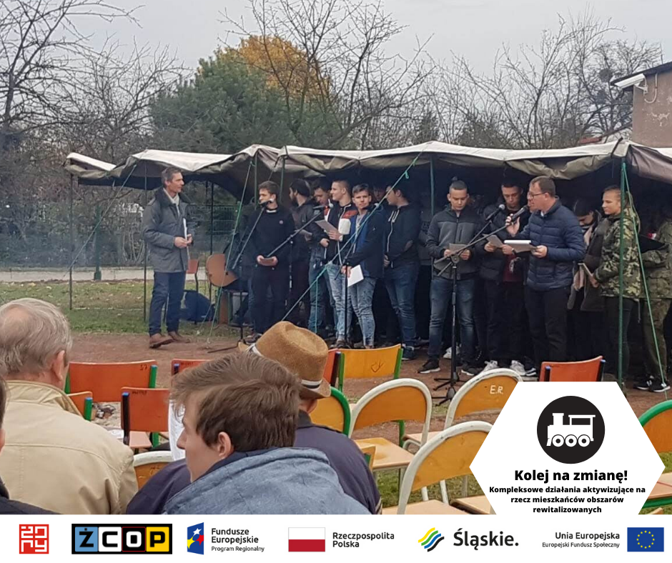 Nie rzucim ziemi skąd nasz ród! Nie damy pogrześć mowy.Polski my naród, polski lud,Królewski szczep Piastowy.Nie damy, by nas zgnębił wróg! Tak nam dopomóż Bóg!Tymi słowami, w dniu 12 listopada o godzinie 11:30 rozpoczęło się Ognisko Patriotyczne zorganizowane z inicjatywy grona pedagogicznego Zespołu Szkół Ogólnokształcących im. Karola Miarki w Żorach. Na ognisko przybyła młodzież z żorskich szkół średnich oraz mieszkańcy miasta Żory, w szczególności dzielnicy Śródmieście oraz zachodniej części dzielnicy Kleszczówka. Na ognisku zagościli również uczestnicy Centrum Integracji Społecznej w Żorach oraz zaproszeni goście.